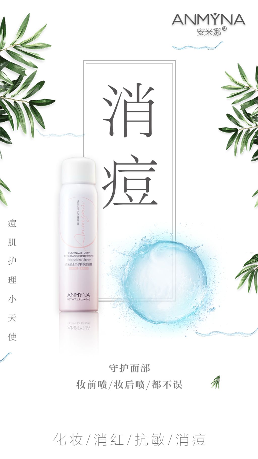 创新一水多用设计,代替化妆水。定妆好帮手,妆容更持久。极细喷雾因子更容易吸收, 搭配安米娜精华液使用,有效促进精华液吸收,改善受损肌肤舒缓干燥和敏感肌肤。
